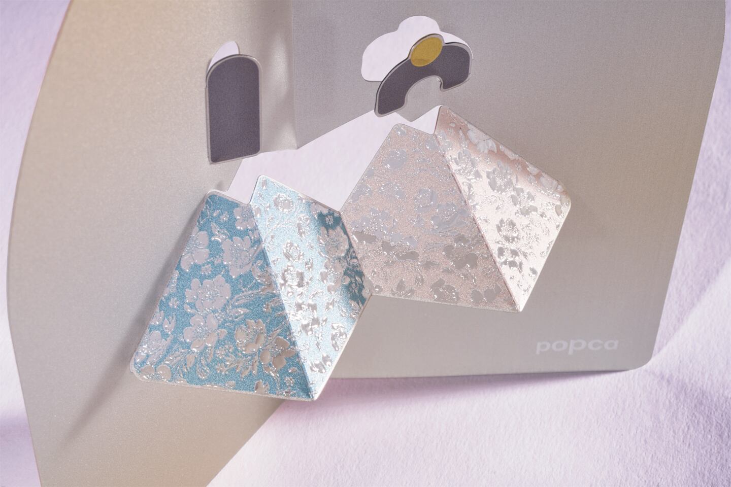 背景部分にはシルクスクリーン印刷で透け感のあるメタリックを印刷しています。金銀砂子細工のようなキラキラ感を、透け感のある素材の上で表現するのはまさに特殊印刷ならではの技術です。