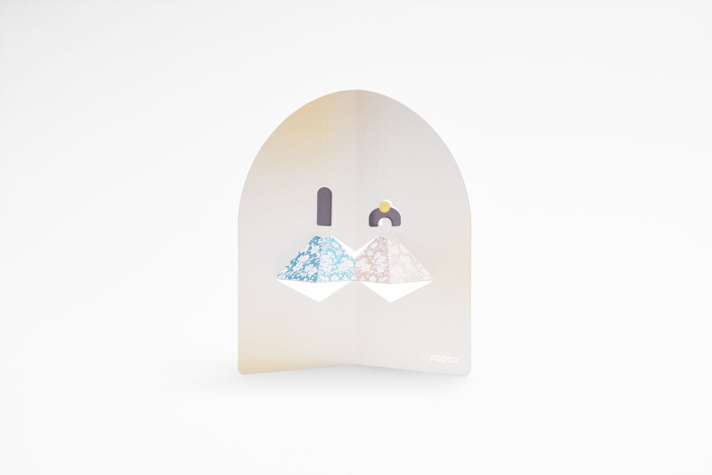 お内裏様とお雛様の着物は、シルクスクリーン印刷によってぷっくりとした手触りに。さらにデジタル印刷で色を付けることで、細かい柄の表現を可能にしています。まるでガラス細工のような繊細さと手触りを実現しました。