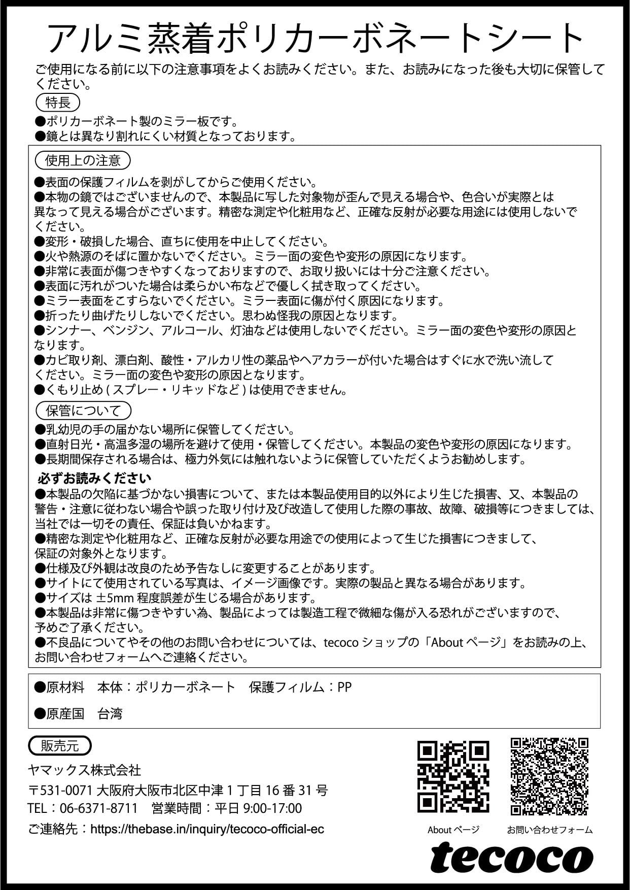 ※本物の鏡ではございませんので、本製品に写した対象物が歪んで見える場合や、色合いが実際とは異なって見える場合がございます。精密な測定や化粧用など、正確な反射が必要な用途には使用しないでください。